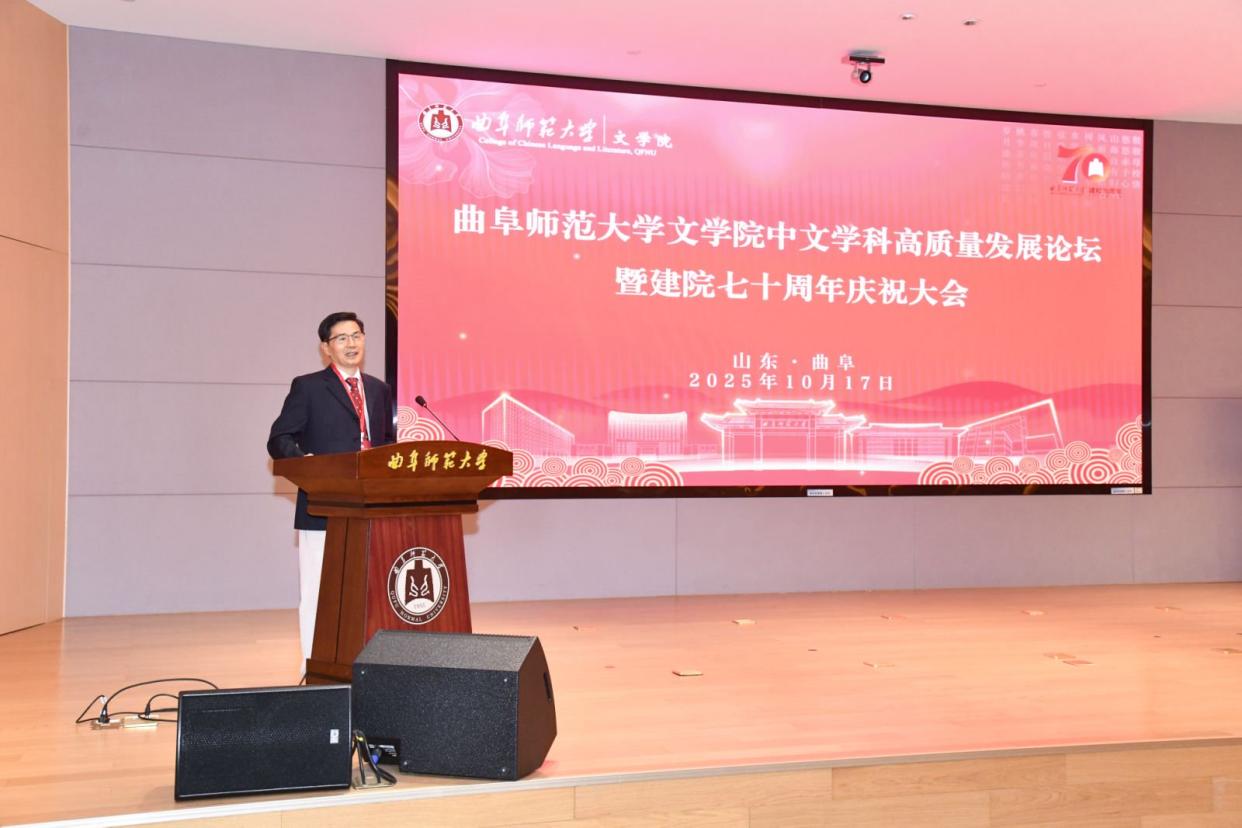 洙泗之地,斯文在兹。七秩弦歌,惟其有章。名师荟萃,桃李芬芳。10月17日下午,曲阜师大中文学科高质量发展论坛暨文学院建院七十周年庆祝大会隆重举行。各级领导、嘉宾、校友和师生代表齐聚一堂,共同回顾学院七十年来的发展成就,探讨和展望中文学科高质量发展的未来。